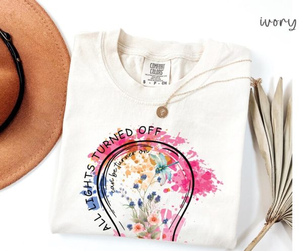 All Lights Turned Off Can Be Turned On, Wildflowers Shirt, Mental Health Matters Tshirt, Gift for Her, Positive T-shirt, Motivational Tee
