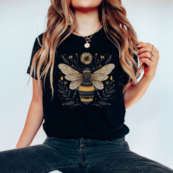 Bee Goblincore Folk Art Tshirt, Cottagecore T-Shirt, Gothic Bee Lover T Shirt