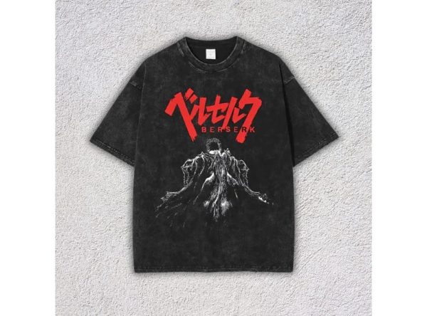 Berserk Anime Tee, Oversized Washed Streetwear T-Shirt