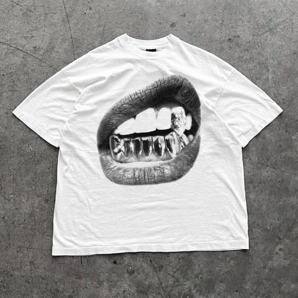Big Lips Y2k Mouth T Shirt – Grillz White T Shirt – Unisex Y2k Shirt