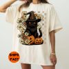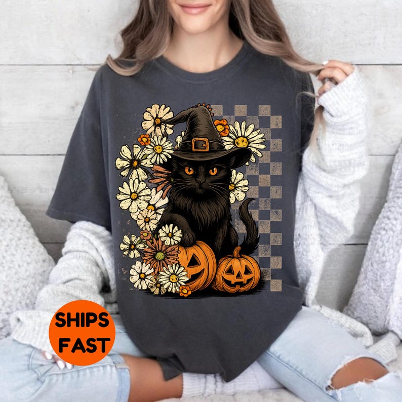 Comfort Colors Black Cat Halloween Shirt: Spooky Season Cat Lover Tee