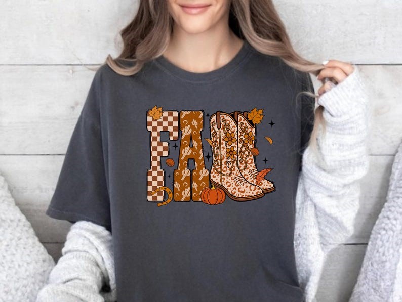 Comfort Colors Fall Pumpkin Shirt, Western Cowboy Boots sweatshirt, Thanksgiving tee