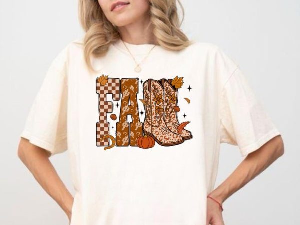 Comfort Colors Fall Pumpkin Shirt, Western Cowboy Boots sweatshirt, Thanksgiving tee