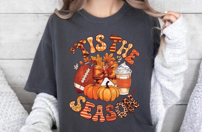 Comfort Colors® Fall Season Shirts, Tis The Season Sweatshirt, Fall Pumpkin Shirt, Retro Halloween Aesthetic, Women Halloween Pumpkin shirt