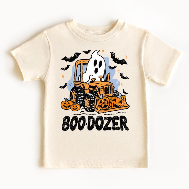 Funny Halloween Construction T shirt, Boo-Dozer Toddler Graphic Tee, Cute Bulldozer Halloween Shirt for Boys