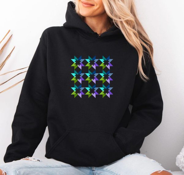 Geometric Star Print long sleeve Hoodie, Star Quilt Pattern Print, Quilters Hoodie