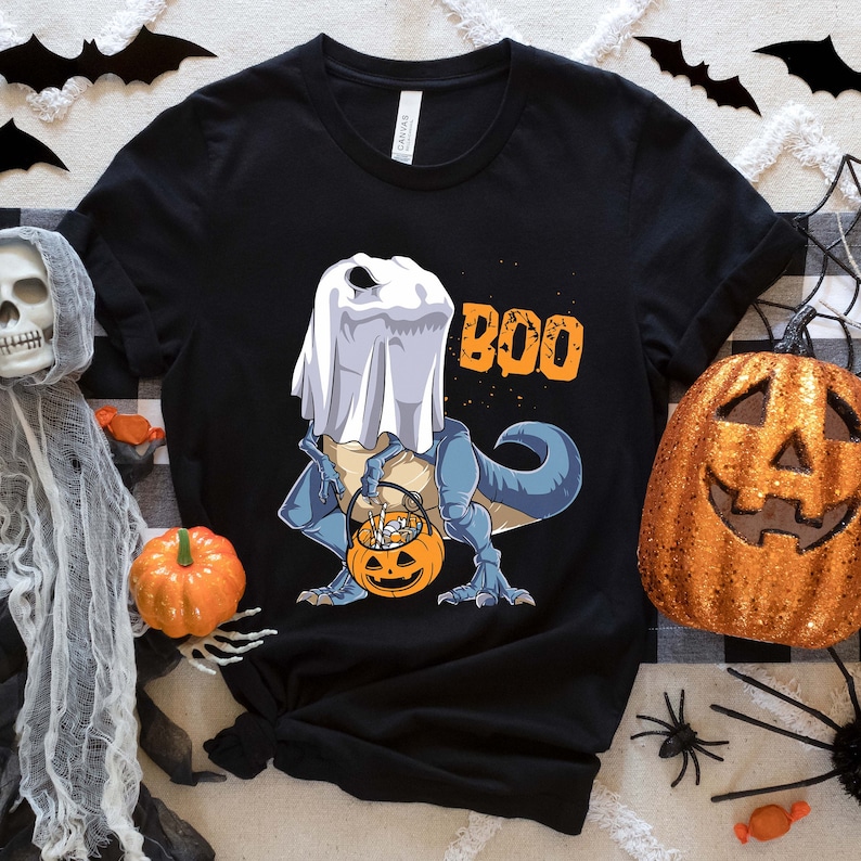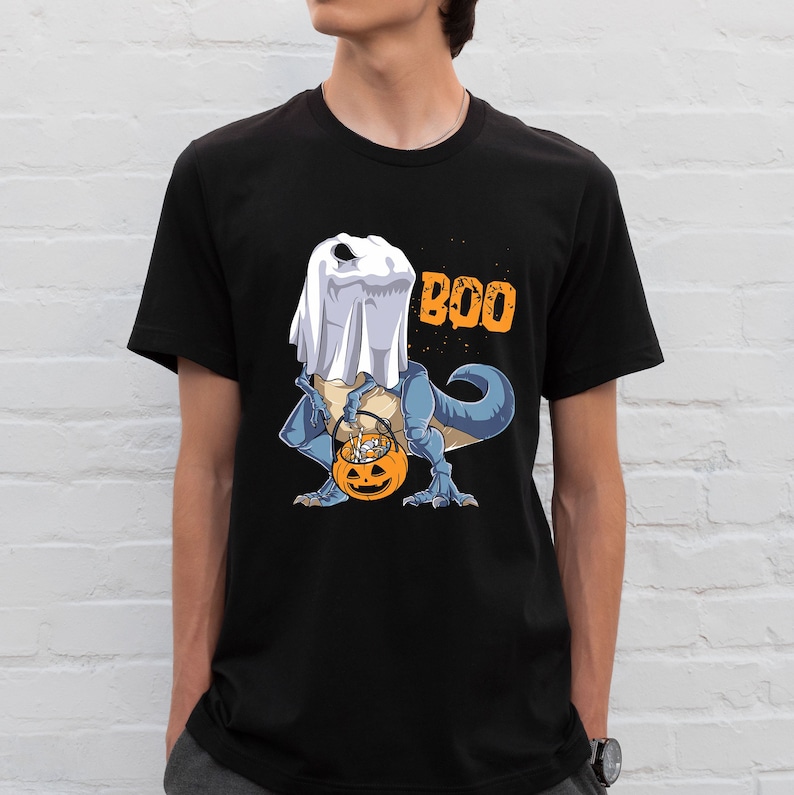 Halloween – Trick or Treat T-Rex- Black T-shirt