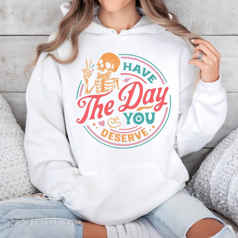 Have The Day You Deserve Hoodie, Peace Sign Skeleton Hoodie