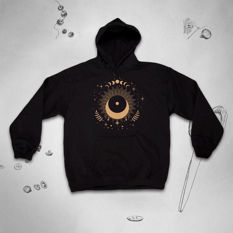 Moon hoodie Trendy graphic design Aesthetic celestial boho style Stars Sun Sky Cute unisex with hood for women idea