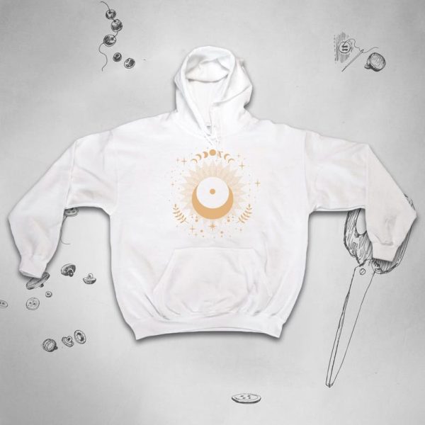 Moon hoodie Trendy graphic design Aesthetic celestial boho style Stars Sun Sky Cute unisex with hood for women idea