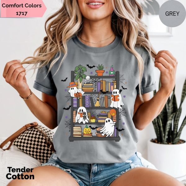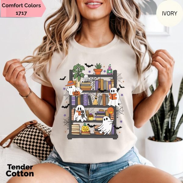 Spooky Bookshelf T-shirt: Halloween Ghost Tee