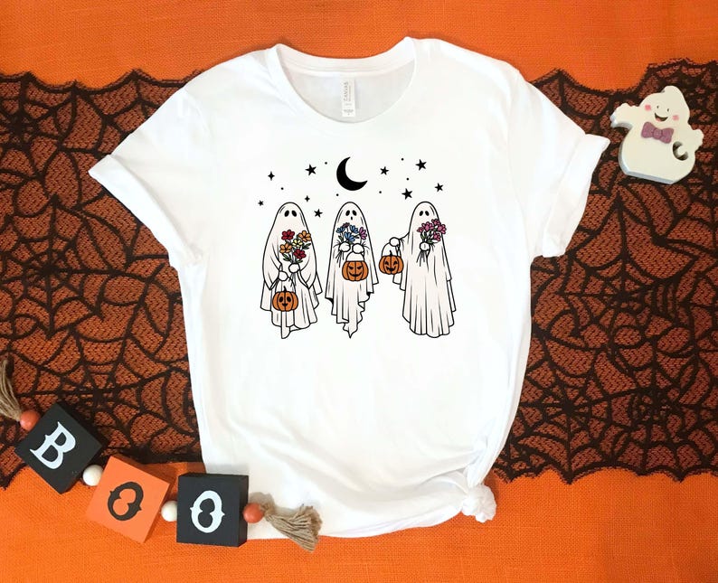 Vintage Halloween Ghost Shirt: Floral Retro Spooky Pumpkin Tee
